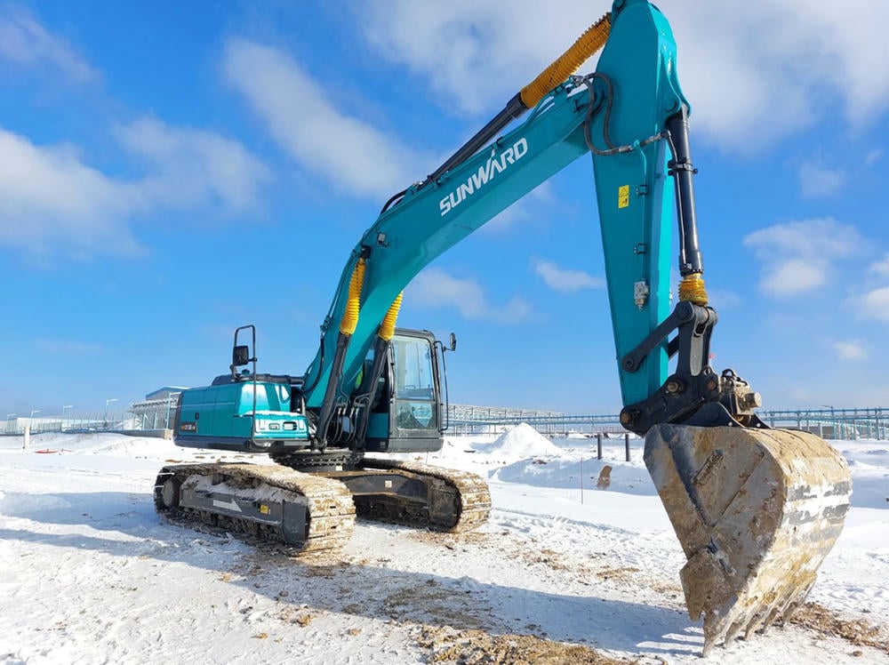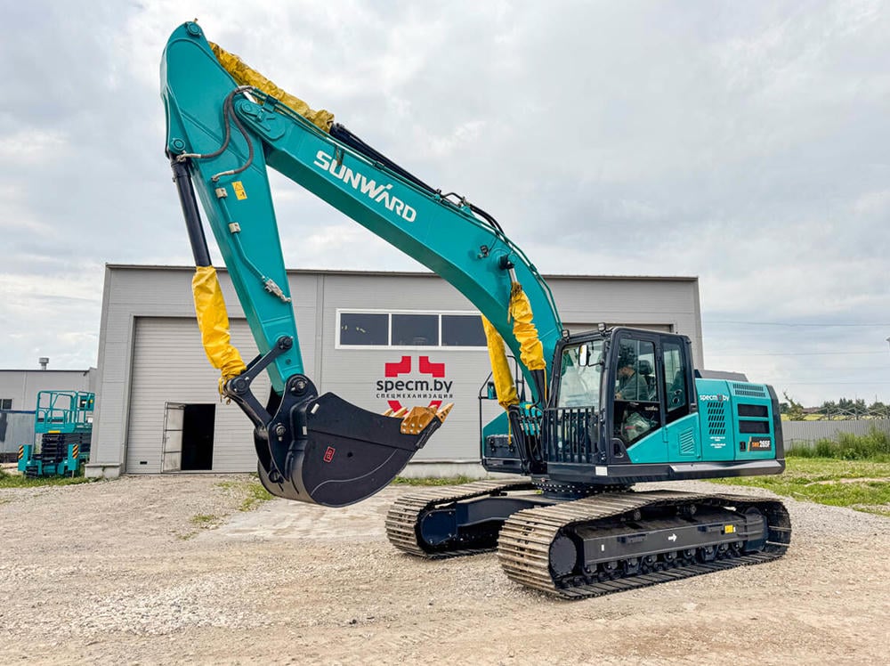 Гусеничный экскаватор SUNWARD SWE225E-3H — универсальный 22–23 т класс для земляных работ, погрузки и планировки, с акцентом на тяговые усилия и экономичность. Типовые характеристики: рабочая масса около 22 300–22 500 кг, двигатель Cummins QSB7 мощностью примерно 124 кВт (≈169 л.с.), ковш 1,0 м³, глубина копания до ≈6,7 м, максимальная высота копания ≈9,75 м, высота выгрузки ≈6,98 м, рабочий радиус ≈9,9 м. Усилия: ковша до ≈155 кН и рукояти до ≈110 кН, что ускоряет разработку плотных грунтов.